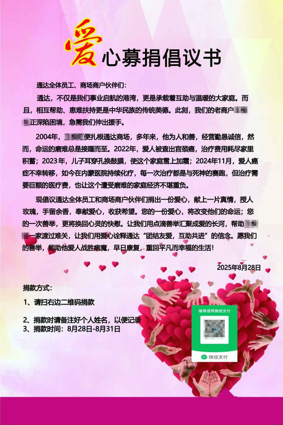 通達商場(chǎng):“愛(ài)心匯聚,共筑希望”募捐活動(dòng)顯真情 |